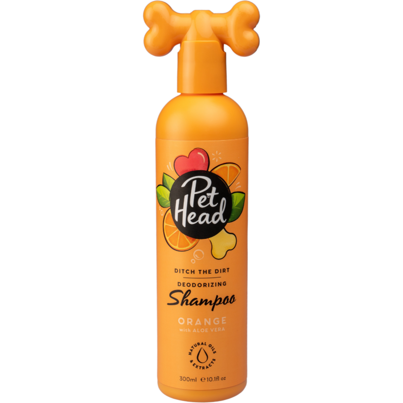 Ce shampooing Pet Head Ditch the Dirt nettoie et prend soin du pelage de votre chien, le désodorise et lui donne un merveilleux parfum d'orange.