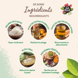Ce shampooing pour chien aide à démêler les poils et à éliminer même les nœuds les plus tenaces. Contient du beurre de karité nourrissant qui, entre autres, hydrate et peut aider à réduire la casse des cheveux. L'huile de noyau d'abricot apporte également un soin intensif et peut renforcer la souplesse des cheveux.
