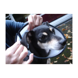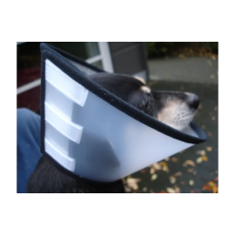 Ce couvre-chef en plastique est souvent utilisé après une opération ou lorsque votre chien a une blessure. Il est ajustable avec du velcro et empêche votre chien de lécher ou de mordre ses plaies.